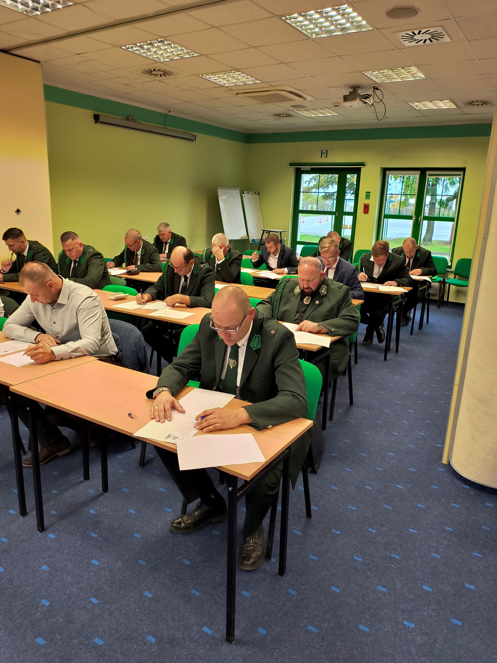Kursanci złożyli w dniach 18 października egzaminy . Egzamin obejmował test oraz odpowiedzi na wylosowane zestawy trzech pytań. W kursie wzięły udział 23 osób. Niemal wszyscy uczestnicy zdali egzaminy i uzyskali selekcjonerskie uprawnienia łowieckie w pierwszym terminie. Dwóm kolegom się nie powiodło i musieli przystąpić do egzaminu w terminie poprawkowym. Podkreślić trzeba, że nasi słuchacze uzyskali bardzo wysokie wyniki zarówno z testów jak i na egzaminie ustnym. Egzaminy zakończono uroczystym pasowaniem na selekcjonera, którego dokonał kordelasem myśliwskim łowczy okręgowy kol. Jan Kantypowicz w asyście przewodniczącego komisji egzaminacyjnej kol. Jerzego Szkutnika.